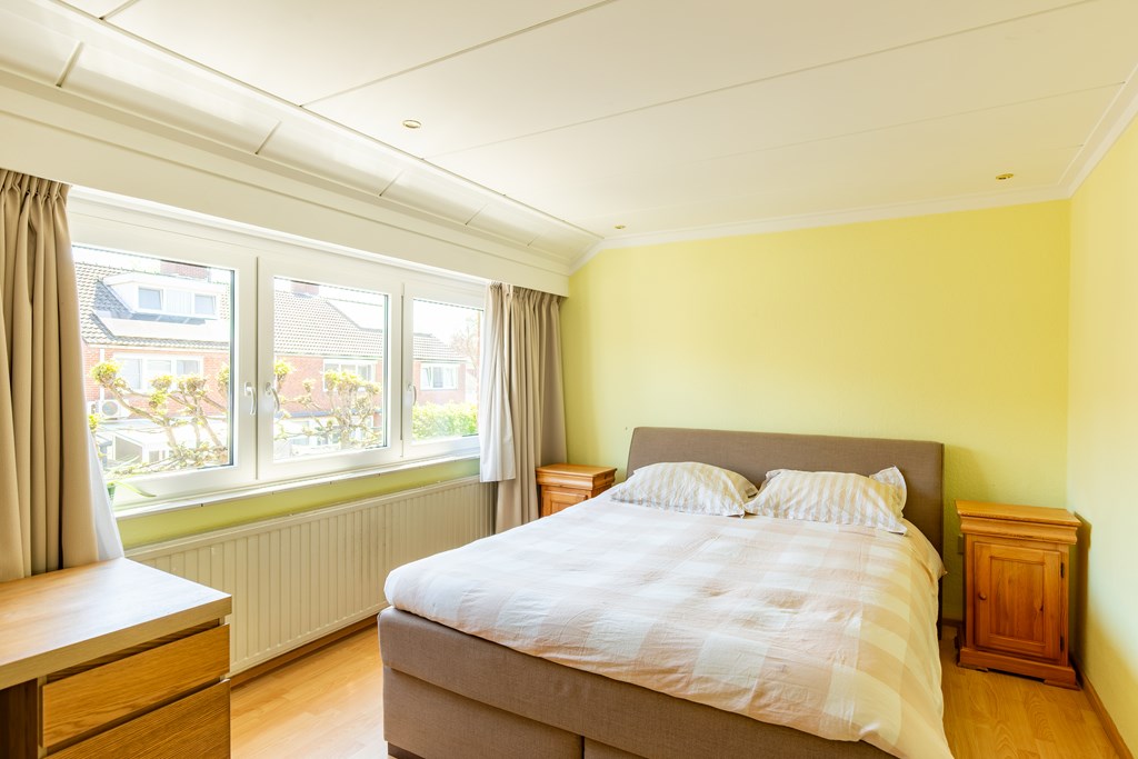 Op de eerste verdieping bevinden zich drie goed bruikbare slaapkamers van respectievelijk ca. 8 m², 9 m² en 17 m². De grootste slaapkamer is royaal van formaat en biedt volop ruimte voor een tweepersoonsbed en kastruimte. De badkamer (ca. 5 m²) is compleet ingericht met ligbad, toilet, wastafelmeubel en aansluiting voor de wasmachine.